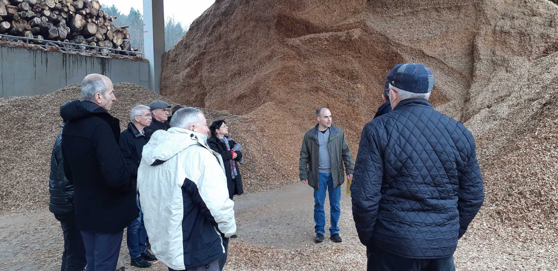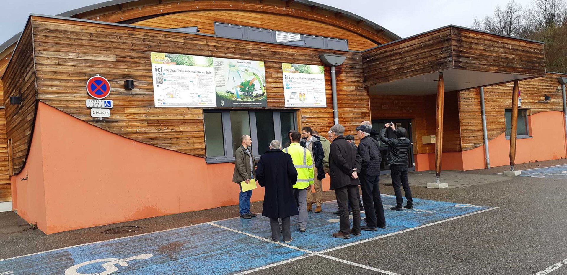 La Communauté de communes du Pays de Colombey et du Sud Toulois réfléchit actuellement à un projet de réseau de chaleur bois à Colombey-les-Belles. Les communes de Choloy-Ménillot, Domgermain, Pierre-La-Treiche (Communauté de communes Terres Touloises) se sont réunies pour lancer une étude d'opportunité de réseau de chaleur bois également. Ces deux entités, en plus de la mise en place d'un réseau de chaleur, s'interrogent sur l'approvisionnement en bois des chaufferies par les ressources bois locales. Repérée pour sa démarche innovante et exemplaire, la Vallée de Kaysersberg a été choisie pour ce voyage d'étude. La communauté de communes a construit en 2009 une plateforme bois locale pour approvisionner des chaufferies communales et intercommunales avec des plaquettes produites à partir de bois de la vallée, valorisant une ressource locale. La filière bois mobilise 35 équivalent temps plein, dont une vingtaine de personnes via un établissement et service d'aide par le travail (ESAT). Le groupement d'élus et techniciens du territoire a été accueilli et accompagné tout au long de la journée par Yannick GERIG, chef de projet Environnement – Energie – Economie. La matinée a été l'occasion d'une visite de la chaufferie bois de la commune de Kaysersberg-Vignoble, qui alimente un réseau de chaleur chauffant les principaux bâtiments communaux du centre-ville (gymnase, salle de sport, groupe scolaire) ainsi que des bâtiments privés (bureaux ONF, immeuble d'un bailleur social). Martine SCHWARTZ, Vice-Présidente Energie de la CC de Kaysersberg, nous a rejoint en cours de matinée pour nous exposer la vision politique, économique et social de leur projet global en matière de transition énergétique. La délégation a, durant l'après-midi, visité la plateforme d'approvisionnement en bois énergie et pu échanger avec le gestionnaire afin qu'il nous explique le fonctionnement, les aspects techniques et administratifs et l'aspect social très important de ce projet. Les élus sont repartis de ce voyage enthousiastes et avec l'idée de reproduire les actions à la fois ambitieuses et pragmatiques mises en place par le territoire de Kaysersberg en matière de bois énergie. Le Conseiller Energie Collectivités va continuer à accompagner ces projets et les aider à transformer les idées en actions afin de répondre à l'enjeu de transition énergétique et la démarche TEPOS. |