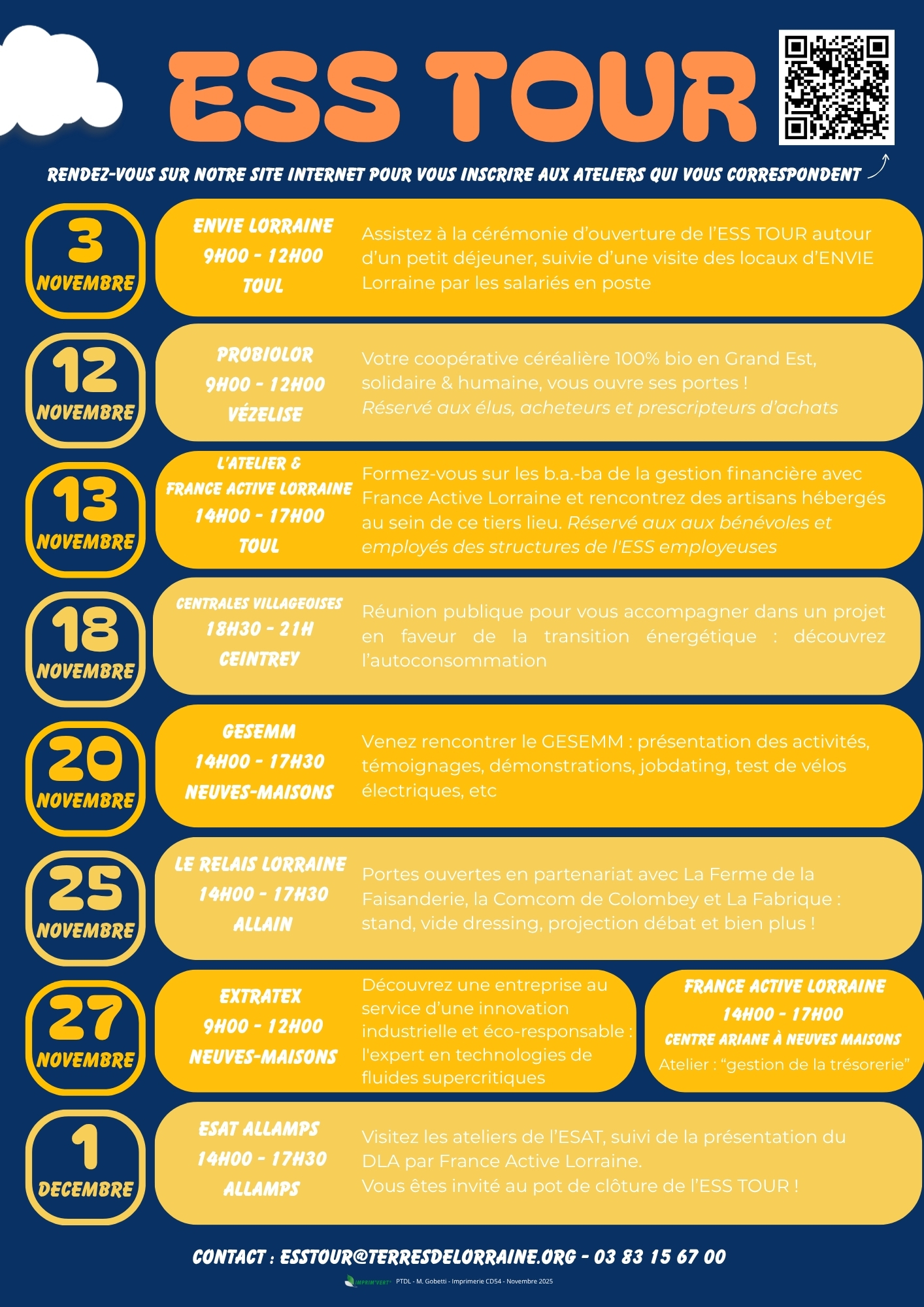 A l'occasion du mois de l'ESS, le Pays Terres de Lorraine (PTDL), en partenariat le Département de Meurthe et Moselle, France Active Lorraine, IAE Grand Est, Lorr'Up et la Maison de l'Emploi TDL organisent conjointement, en novembre 2025, « l'ESS TOUR Terres de Lorrain".
