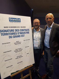 ![]() Le territoire Terres de Lorraine y était représenté par Dominique POTIER (Président du Pays Terres de Lorraine) et Jean-François CARON (Président de l'association Parole d'Entreprises). Cette manifestation a été l'occasion de signer le protocole « Territoire d'industrie Terres de Lorraine » qui engage notre territoire dans ce dispositif national, lancé par le gouvernement fin 2018 pour soutenir environ 140 territoires dans l'émergence, l'accompagnement et l'accélération de projets structurants portés par ou au profit des entreprises industrielles. Notre contrat identifie aujourd'hui une dizaine de projets sur les 3 thématiques suivantes : la transition écologique, les infrastructures économiques et les ressources humaines. Ceux-ci pourront être enrichis de nouvelles fiches actions tout au long de la durée de ce contrat triennal (2019-2021). |